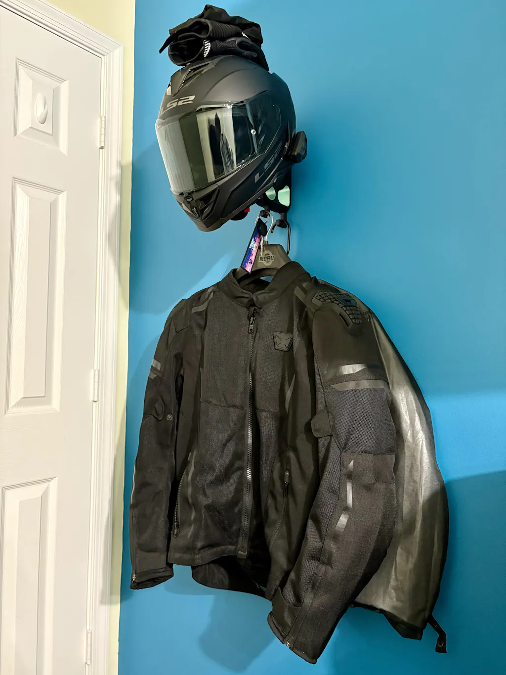 Amazing product, mounting was easy and is very sturdy. Keeps gear off the floor and out of the closet, easy access when I’m ready to ride.